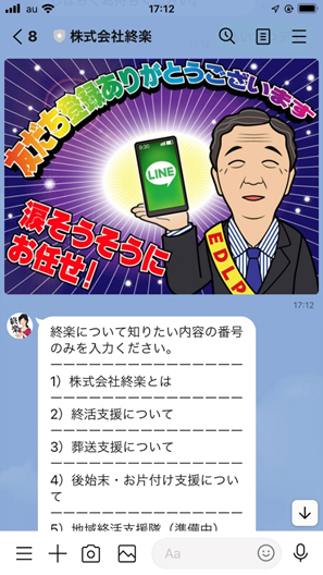 LINE(ライン)で簡単に終楽へのご相談・お問合せ・お申込みできます!
